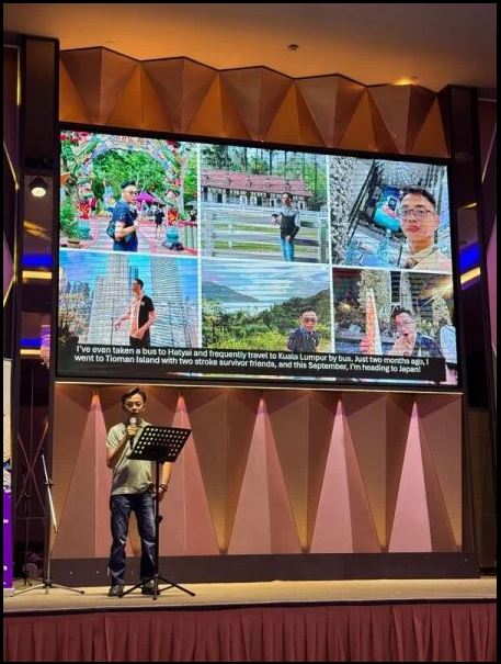 “Even after 10 years, I still love to travel. This is not to show off, but to encourage other stroke survivors never to give up and believe in their recovery,” he shared to resounding applause.