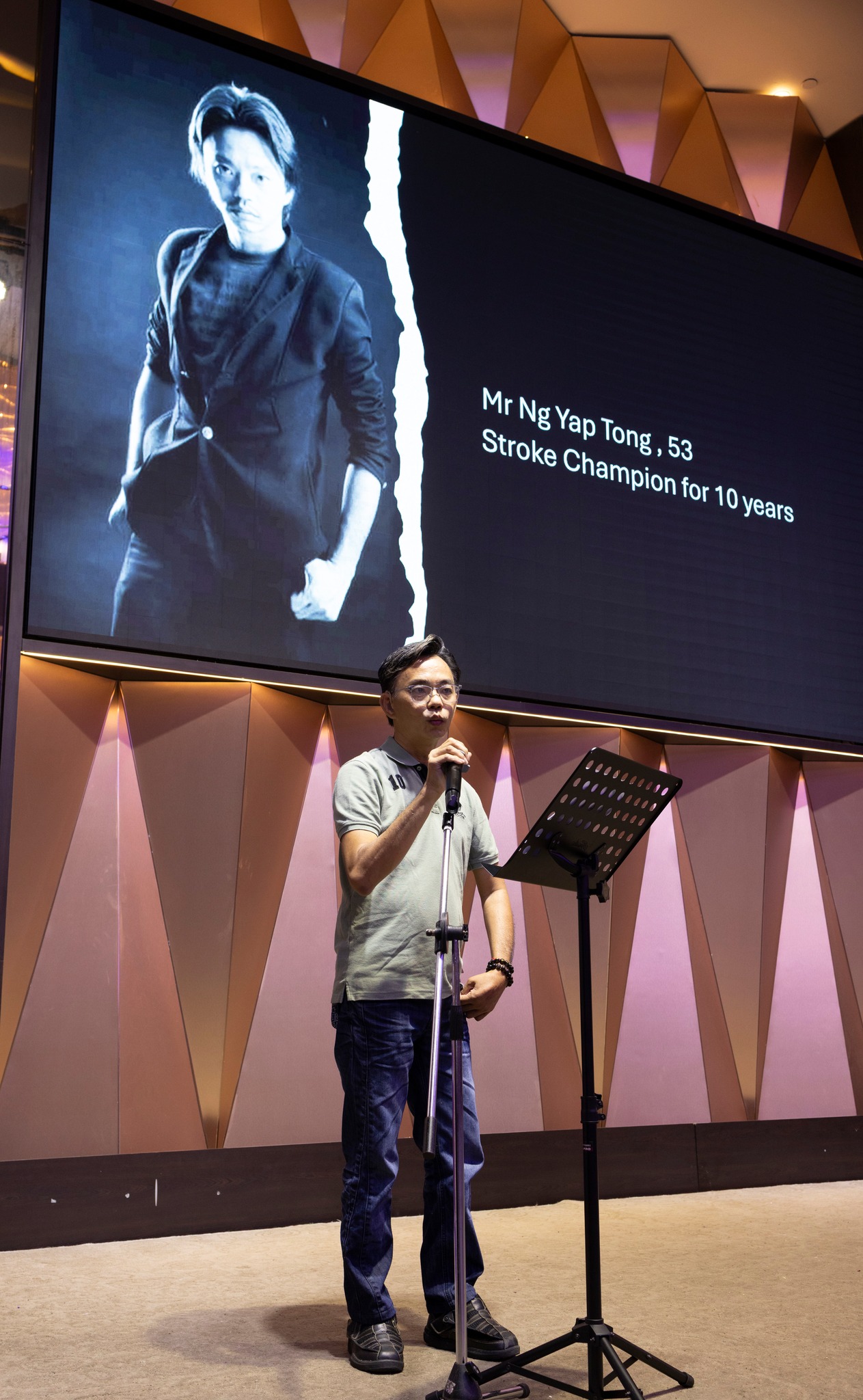 Highlight of the evening was stroke survivor Ng Yip Tong, a 53-year-old photographer, who shared his remarkable journey. Despite suffering a stroke 10 years ago due to hereditary hypertension, he never gave up. With NASAM’s rehabilitation, he relearnt to walk within a month and within nine months, was back doing what he loved – photographing weddings at sea.